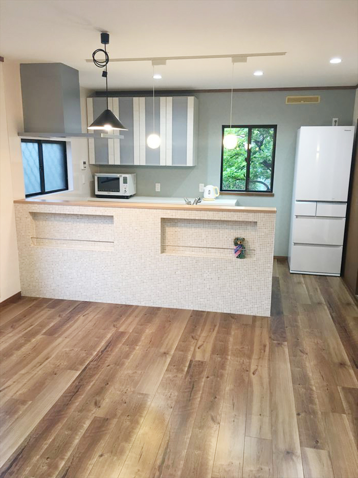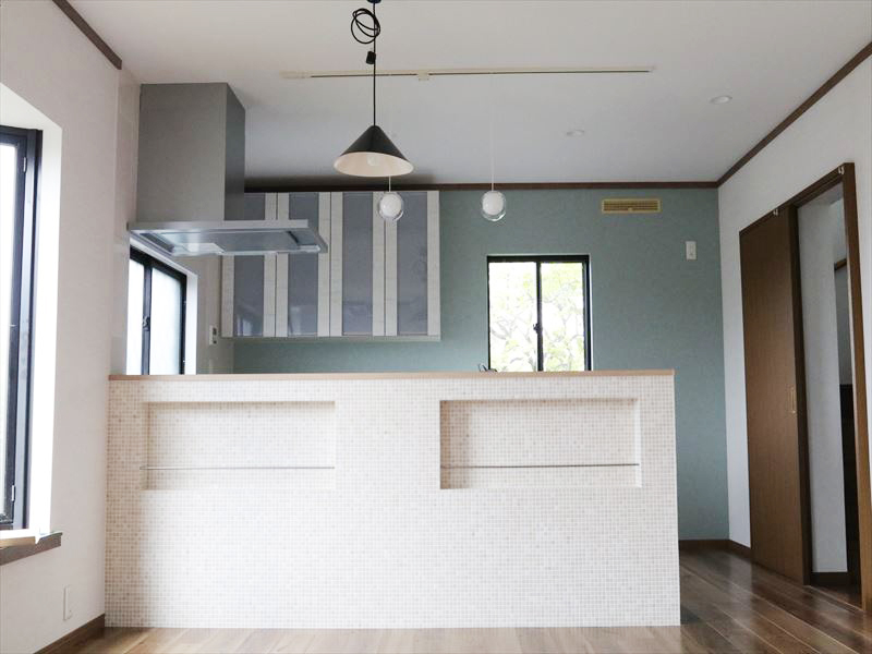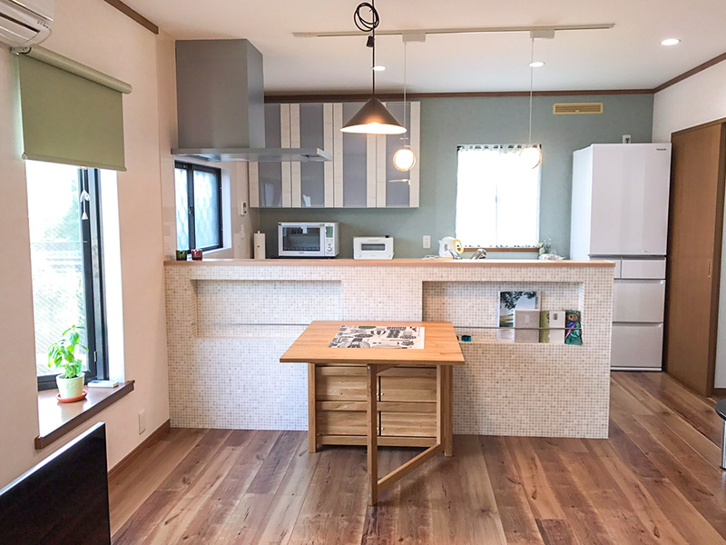 モザイクタイルがオシャレ!娘夫婦も喜ぶ明るいLDK